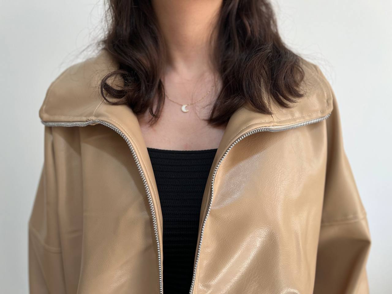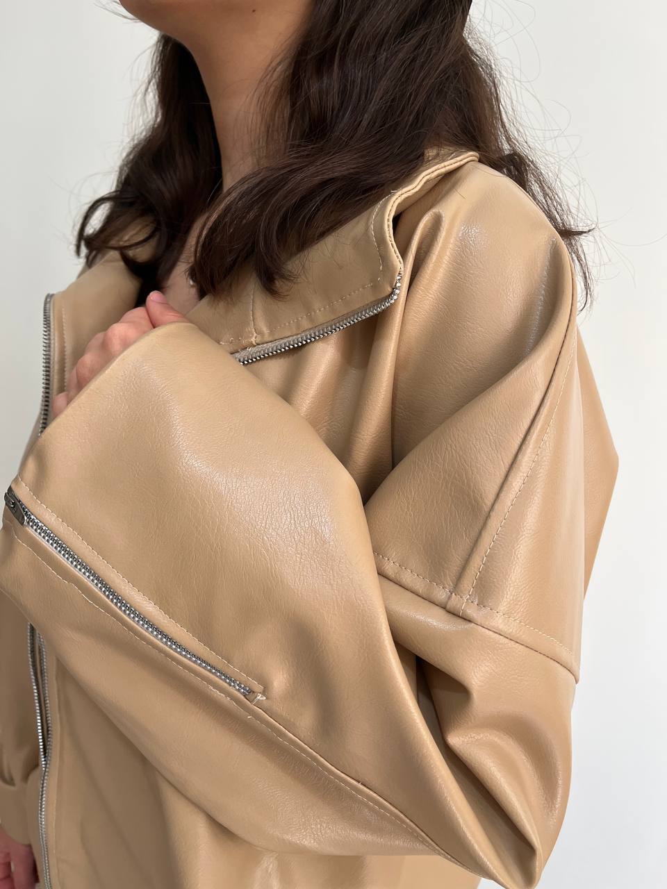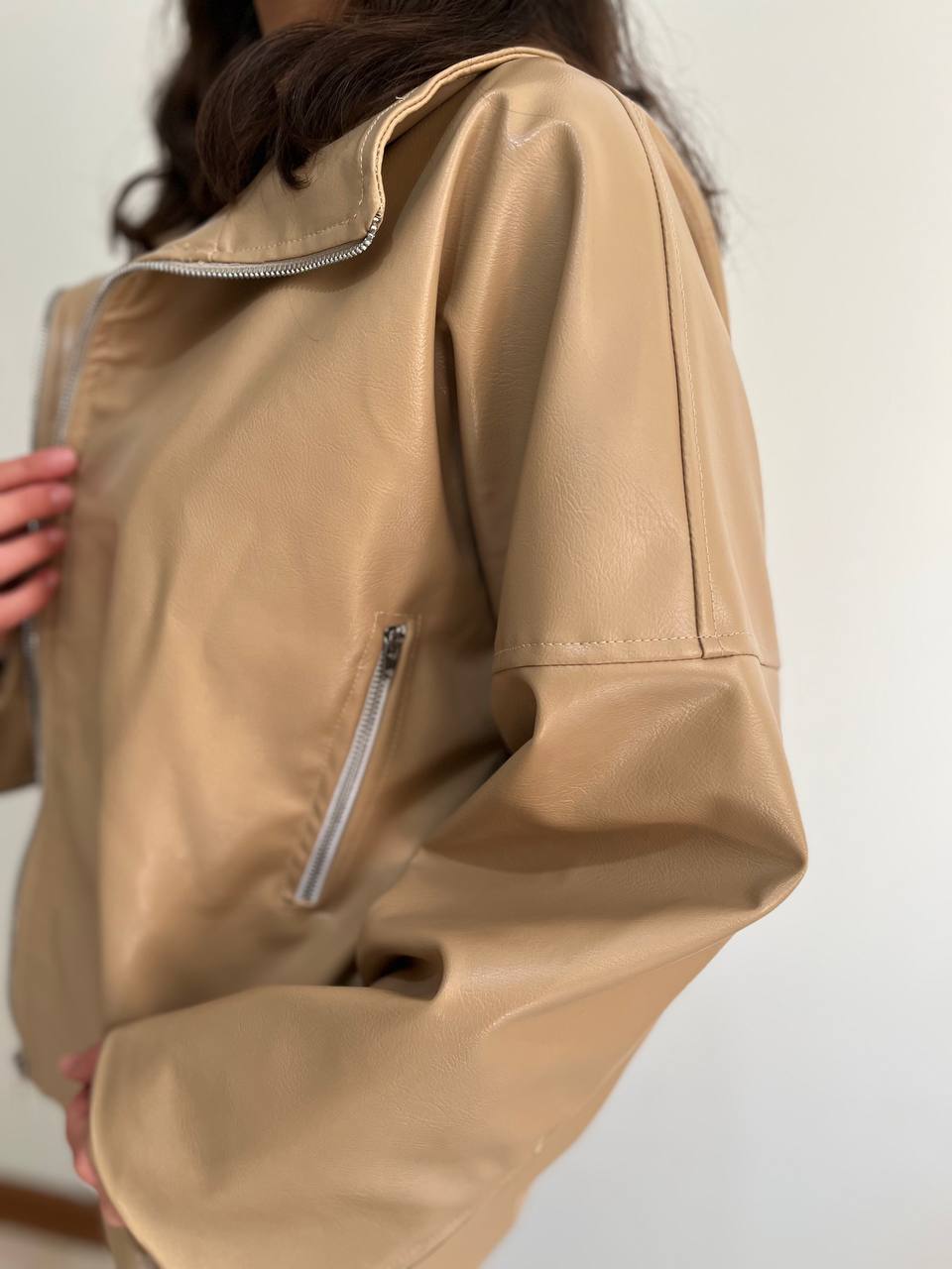 دوختهشده از چرم براق با رنگ بژ گرم که زیر نور، خاصترین درخشش رو داره.